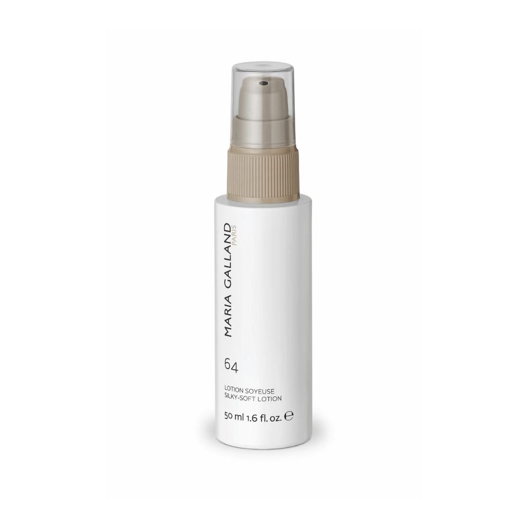 64 Lotion Soyeuse – viena perkamiausių „Maria Galland“ priemonių, išsiskirianti intensyviu drėkinimu ir prabangia tekstūra. Dėl savo išskirtinės, tirštos, į serumą panašios konsistencijos losjonas tepamas tiesiai ant veido, nenaudojant vatos padelio. Jis atgaivina odą, padeda išlaikyti drėgmės balansą ir stiprina apsauginį barjerą, palikdamas ją švelnią, sudrėkintą ir švytinčią.